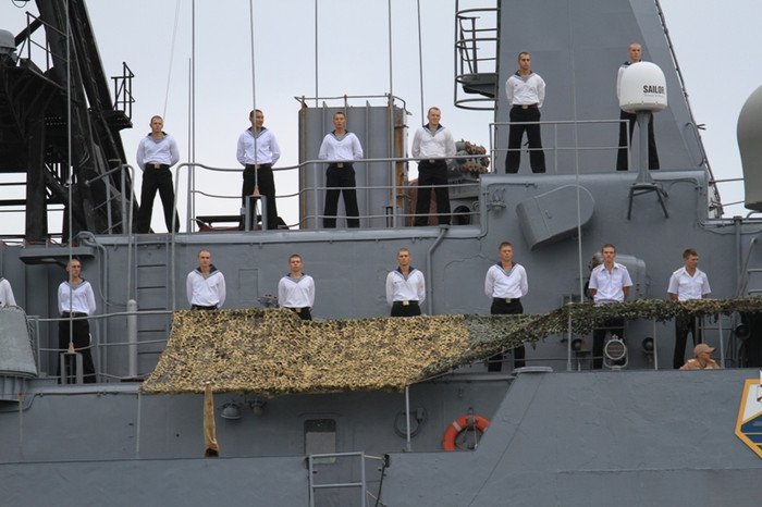 | Các sỹ quan, thủy thủ trên tàu chống ngầm (BPK) “Đô đốc Panteleev”. |