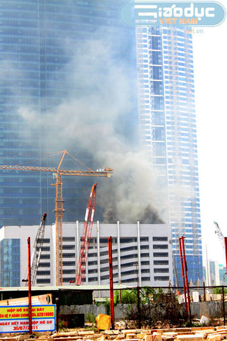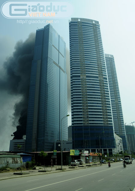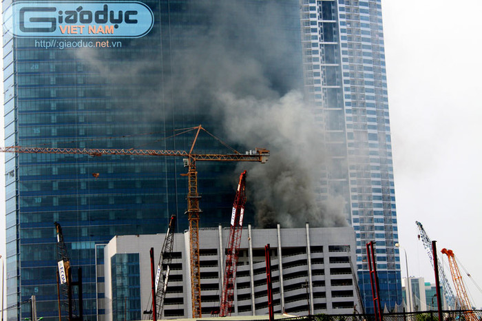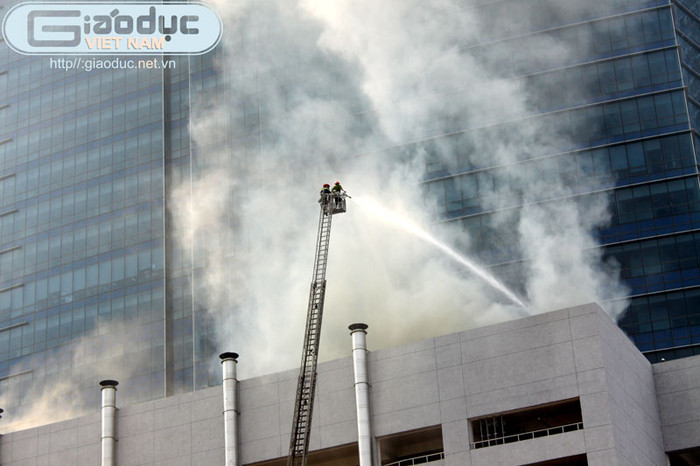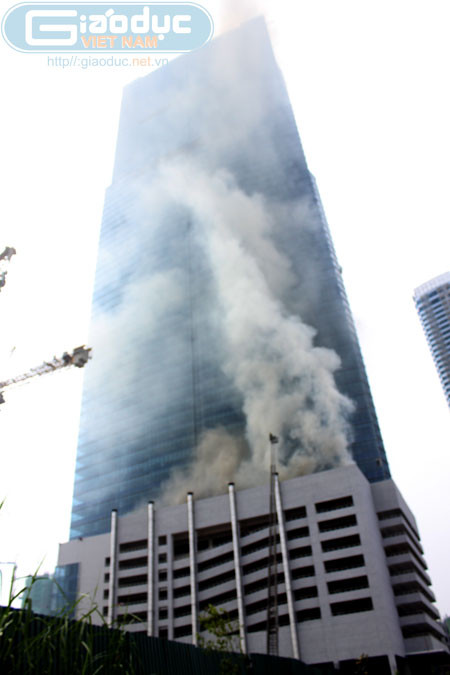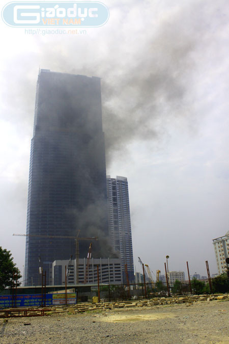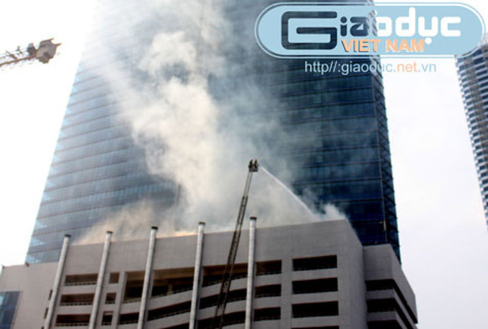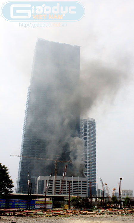 (GDVN) - Vụ hỏa hoạn xảy ra lúc 14h20 tại tầng thượng tháp phụ 25 tầng thuộc khu nhà Keangnam khiến hàng trăm công nhân hoảng loạn.