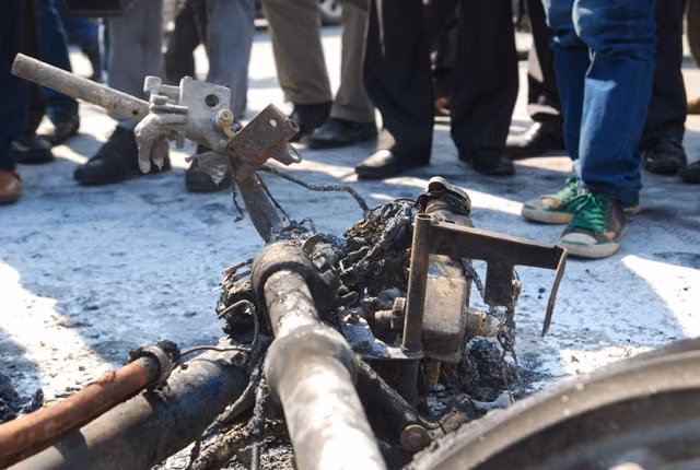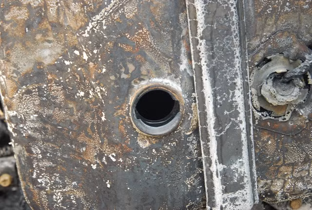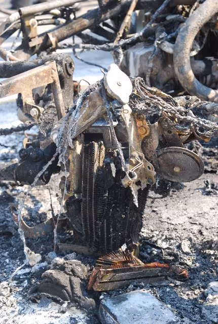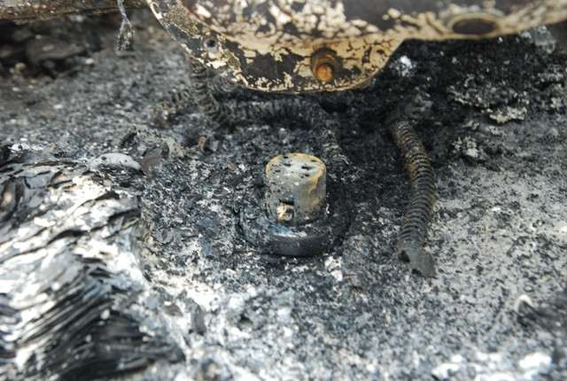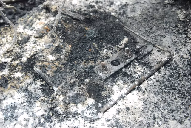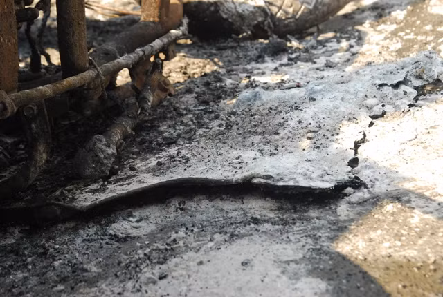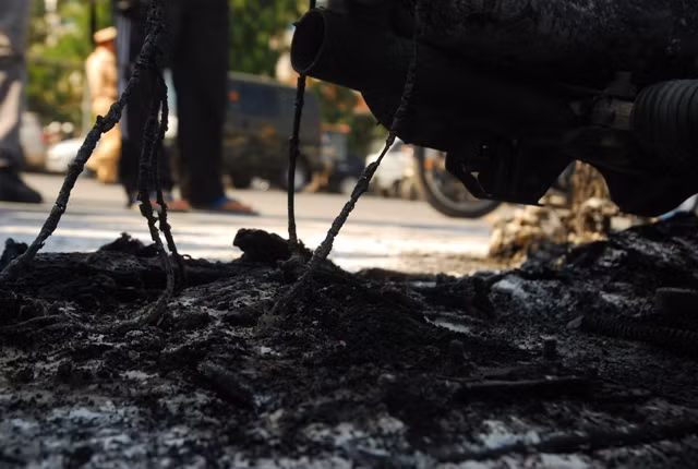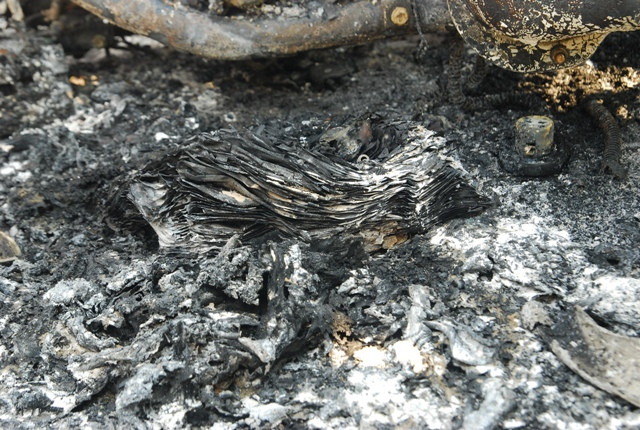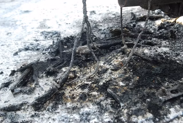Những đám tàn cho từ những bộ phận đã bị cháy của chiếc xe