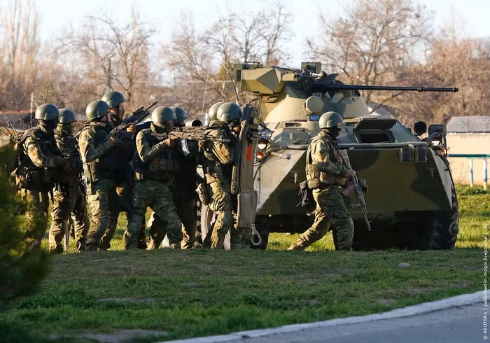 | Lực lượng có vũ trang hạng nặng được cho là lính Nga sử dụng vũ khí tiến vào căn cứ Belbek |