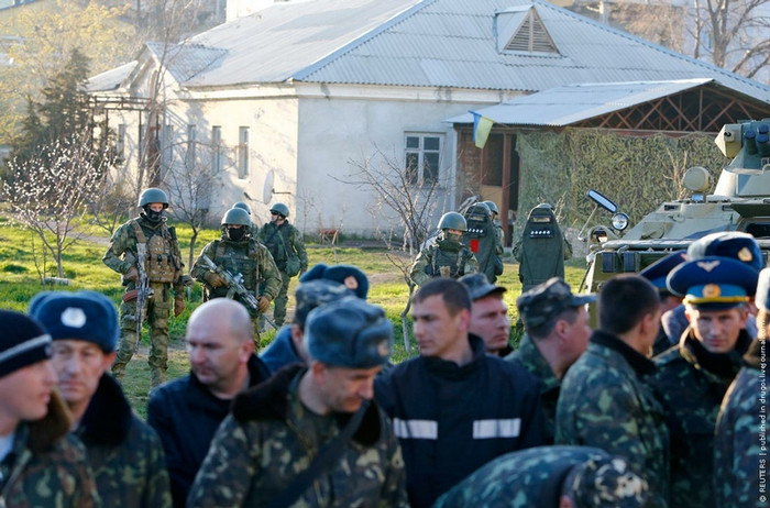 Căn cứ quân sự cuối cùng của quân đội Ucraine trên lãnh thổ bán đảo Crimea đã bị quân đội Nga khống chế và tiếp quản, tất cả các quân nhân Ucraine không chấp thuận đều bị buộc đưa ra ngoài căn cứ.