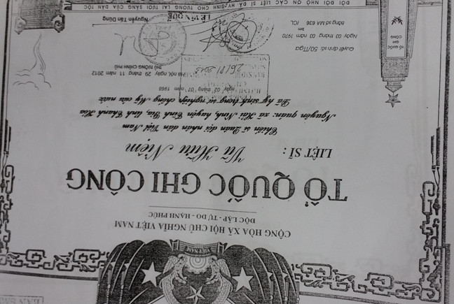 Không chỉ có vậy, lúc ông Đừng mất, gia đình ông Tròn cũng không nhận được khoản hỗ trợ mai táng theo quy định của Nhà nước giành cho thân sinh liệt sỹ. Cũng theo phản ánh của ông Tròn, kể từ khi Nhà nước có chế độ về tiền tuất (hương khói) cho gia đình liệt sĩ nhưng gia đình ông cũng chưa nhận được chế độ này.