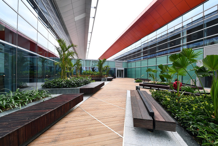 … cùng khu vườn treo xanh mát, thư thái với lối dạo bộ lát gỗ sang trọng, để hành khách có thể thư giãn suốt trong quá trình chờ bay.