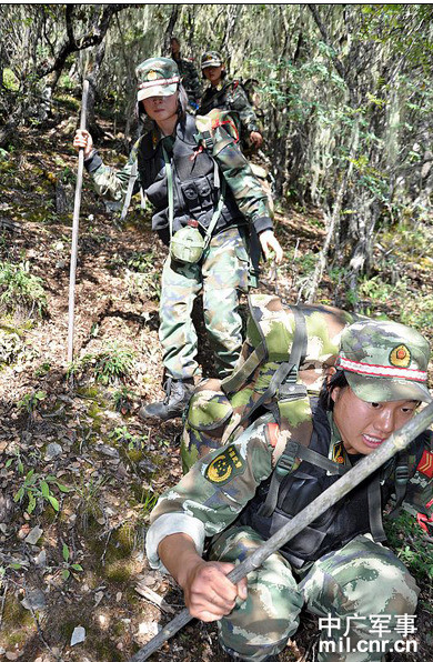 (GDVN) - Ngày 6/9/2011 vừa qua, một đơn vị nữ đặc công của quân đội TQ (PLA) có địa bàn hoạt động tại khu vực kết nối giữa tỉnh Tứ Xuyên và Tây Tạng đã có một buổi tập luyện dã ngoại trên địa hình rừng núi để tôi luyện sức khoẻ và họ đã chứng tỏ sức mạnh dẻo dai và khả năng chịu đựng không hề kém cạnh những nam binh sỹ.