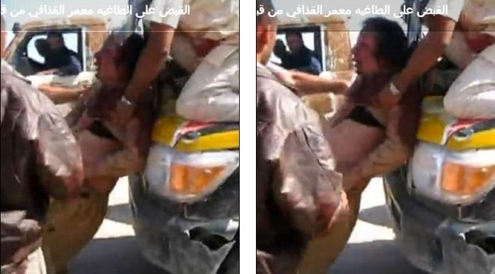 | Cảnh hỗn loạn trong lúc Gaddafi vừa bị bắt giữ |