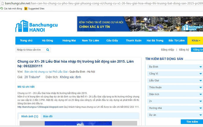 Ví dụ như trên trang banchungcuhn.net đăng công khai thông tin: “Chung cư X1-26 Liễu Gia hòa nhập thị trường bất động sản 2015, liên hệ: 0932203xxx… Nằm ở vị trí trung tâm vô cùng đẹp, dự án tái định cư khu tập thể X1-26 Liễu Giai sắp tung ra thị trường chung cư cao cấp từ 2 đến 3 phòng ngủ…”.