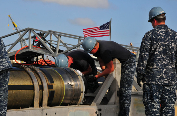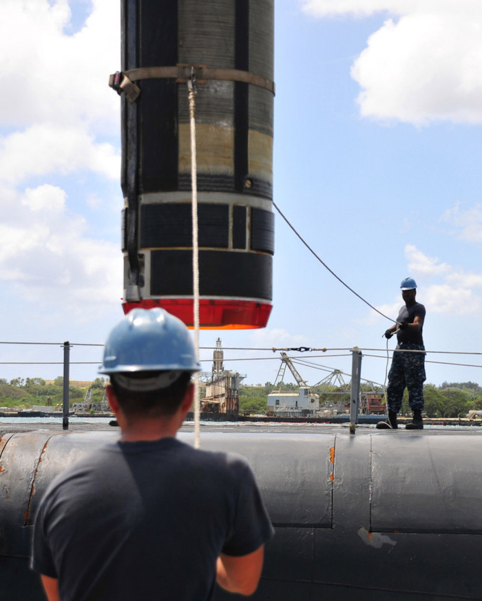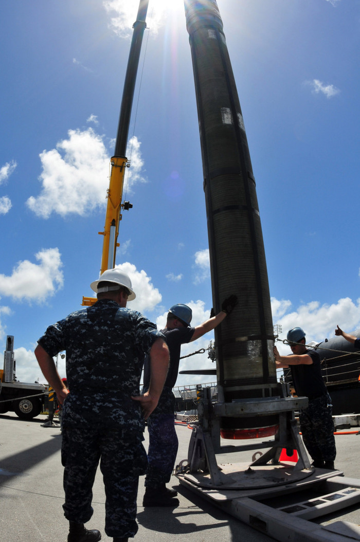 (GDVN) - Những hình ảnh ghi lại cảnh các nhân viên kỹ thuật vũ khí của Hải quân Mỹ đang triển khai lắp đặt các tên lửa tấn công hành trình Tomahawk cho tàu ngầm nguyên tử Michigan khi nó leo đậu tại một căn cứ của Hải quân Hoa Kỳ trên đảo Guam ở Thái Bình Dương. Đây là những bức ảnh được chụp vào đầu tháng 3 năm 2012.