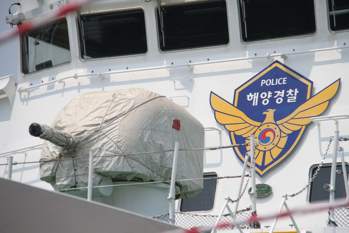 | Phía sau tàu huấn luyện Badaro của lực lượng bảo vệ bờ biển Hàn Quốc |