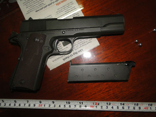 | Vũ khí quân trang thu giữ trên xe và tại nhà của Phụng |