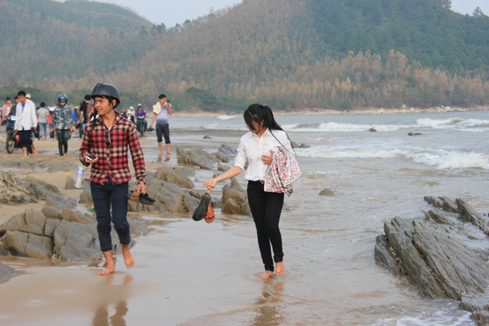 | Biển Vũng Chùa những ngày thường hoang sơ vắng lặng, nay bỗng nhiên trở nên khác biệt bởi dòng người đến tiễn đưa Đại tướng Võ Nguyên Giáp. |