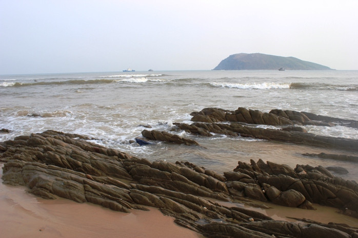 | Khung cảnh hoang sơ với bãi cát vàng kết hợp với đá tạo nên một bức tranh bình yên mang tên Vũng Chùa |