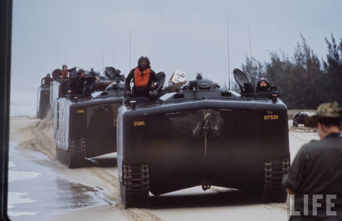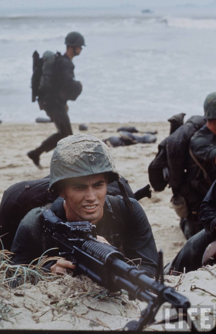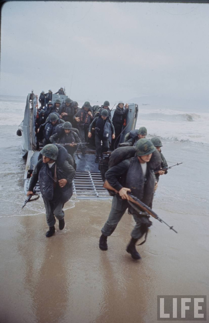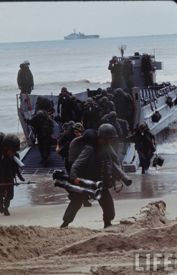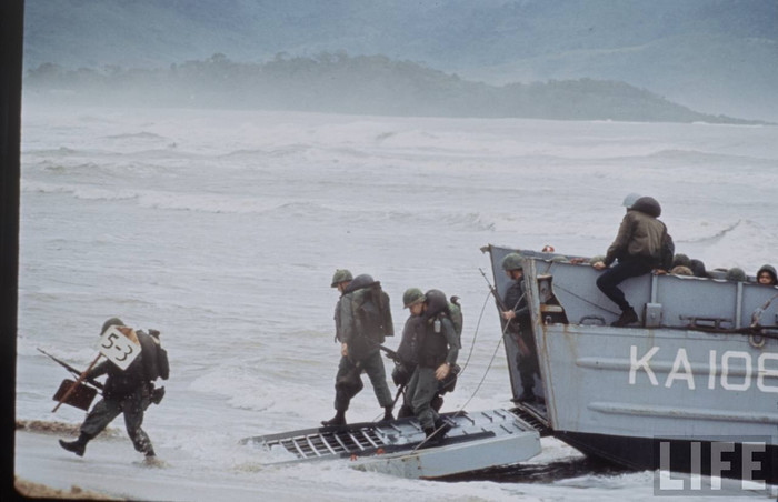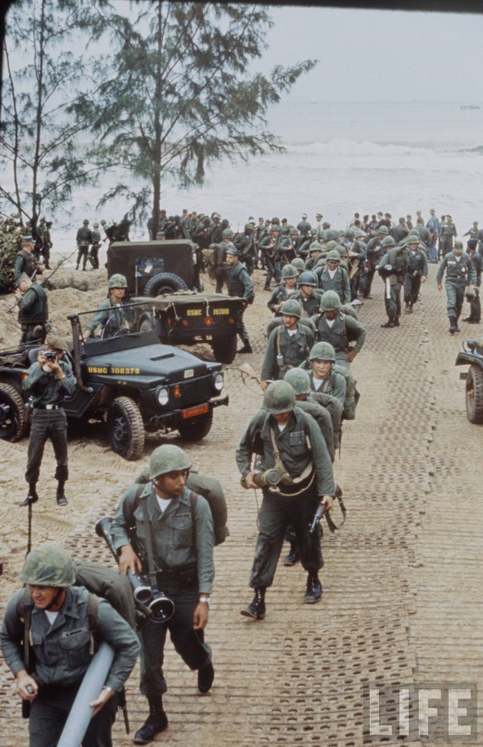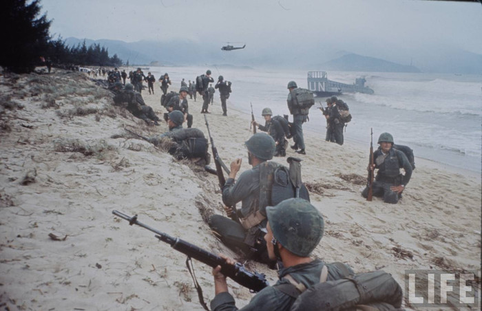 (GDVN) - Tư liệu về Chiến tranh VN từng được tạp chí LIFE công bố, ghi lại cảnh Lữ đoàn lính thuỷ đánh bộ viễn dương số 9 của Hải quân Mỹ đổ bộ Đà Nẵng 3/1965.