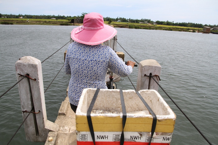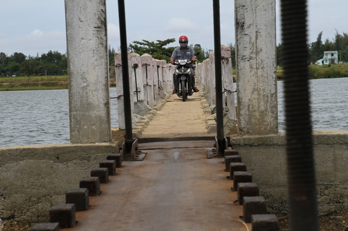 | Bà Nguyễn Thị Đào (61 tuổi, trú thôn 1, xã Tam Tiến, Núi Thành) cho biết: Mỗi ngày bà đi qua lại cầu này 2 lần. Vì sợ quá nên bà Đào dắt xe đạp, không dám ngồi lên xe để đạp đi... |