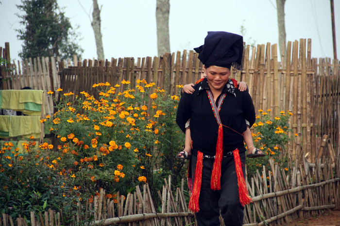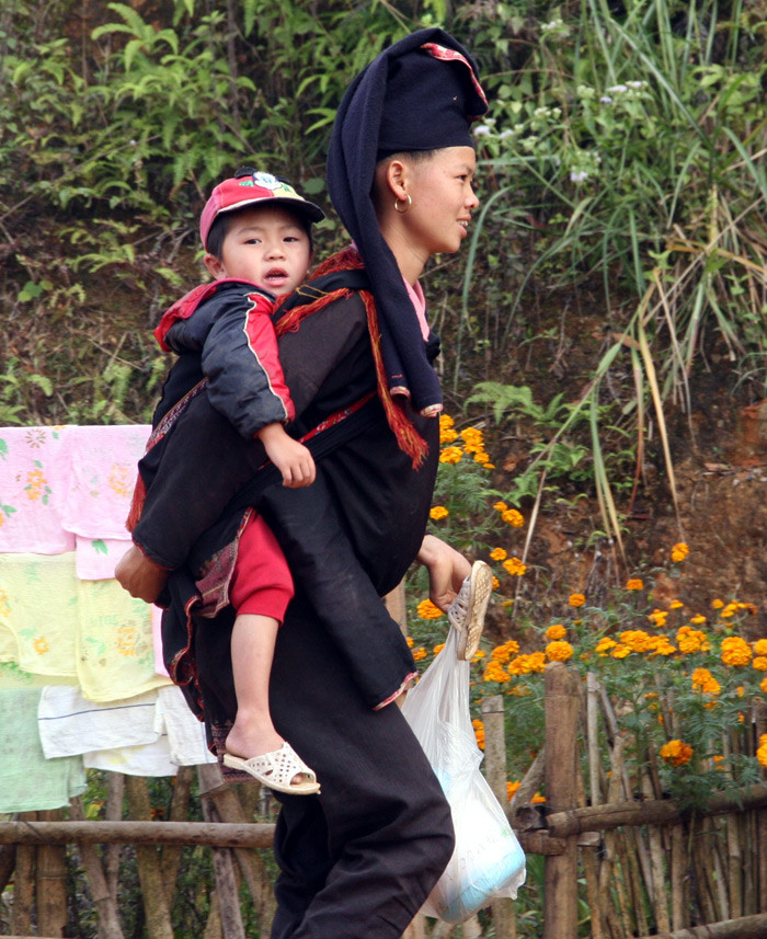 | Nhà có điều kiện thì đưa con đi học bằng xe máy, gia đình nào kém hơn thì địu con trên lưng đến trường mẫu giáo. |
