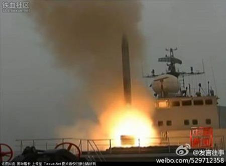 Đoạn phóng sự được cho là đã ghi hình được cảnh một tàu hải quân của TQ lúc nó đang tiến hành phóng một quả tên lửa từ thiết bị phóng thẳng đứng bố trí trên tàu.