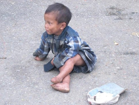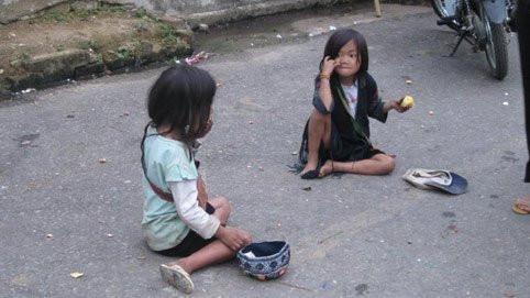 | Nhiều em nhỏ phải xin ăn ven đường. |