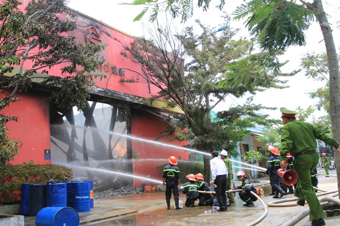 | Nhận được tin báo, lực lượng PCCC TP Đà Nẵng điều động hơn 15 xe cứu hỏa cùng hàng trăm cán bộ, chiến sỹ tới hiện trường khống chế ngọn lửa. |