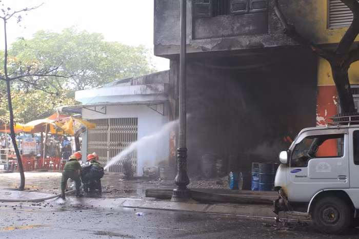 | Đây là công ty chuyên kinh doanh sản phẩm sơn, trụ sở rộng khoảng hơn 500m2, phía sau có kho chứa sơn, nên nhiều vật dụng dễ cháy, nổ. Trong quá trình dập lửa, nhiều tiếng nổ lớn phát ra từ phía kho... |