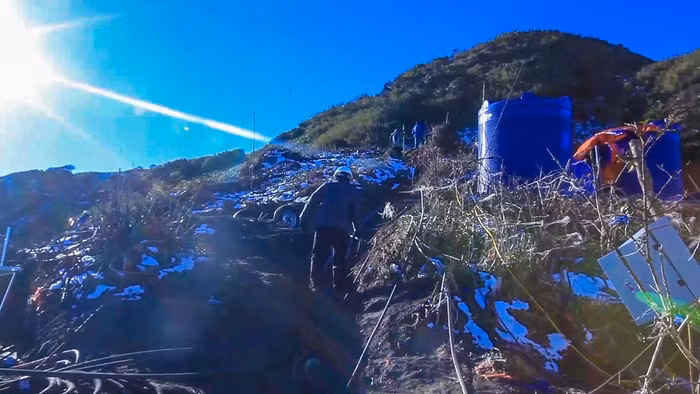 Sáng hôm ấy, trước khi tiếp tục di chuyển theo cáp mồi từ trụ T1 lên T2, theo thói quen hàng ngày, Hậu tranh thủ chụp vài tấm hình ghi lại quang cảnh Hoàng Liên.