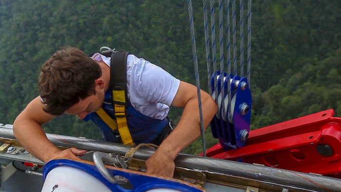Lúc này, ở phía trên cột, Luật yêu cầu tổ phía dưới trùng dây để đấu nối sợi cáp điện vào vị trí. Nhưng do gió và sương mù cản trở, nhóm hỗ trợ nghe nhầm thành thả dây.