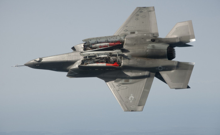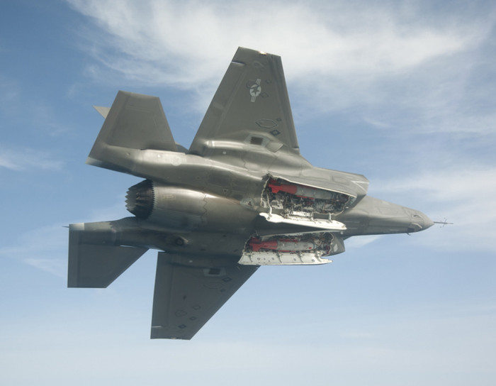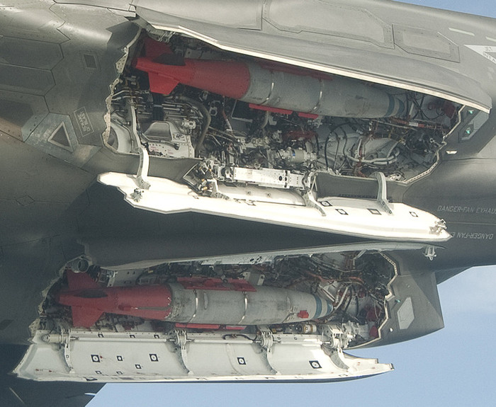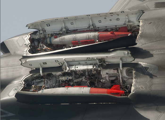 (GDVN) - Những hình ảnh ghi lại cảnh thử nghiệm vũ khí của tiêm kích siêu hạng thế hệ 5 - F-35B của quân đội Mỹ đã xuất hiện nhiều ngày sau khi có thông tin loại máy bay chiến đấu tàng hình này đã được mang vũ khí. Các hình ảnh cho thấy khá rõ những chi tiết của hai khoang chứa bom điều khiển dưới bụng chiếc F-35B khi đang phô diễn trên không trung.
