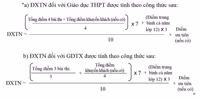 Điểm xét công nhận tốt nghiệp sẽ được tính theo công thức sau: