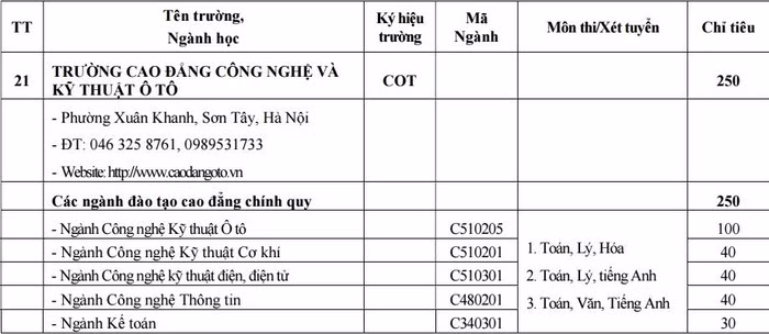 Cao đẳng Công nghệ và Kỹ thuật Ôtô tuyển 250 chỉ tiêu.