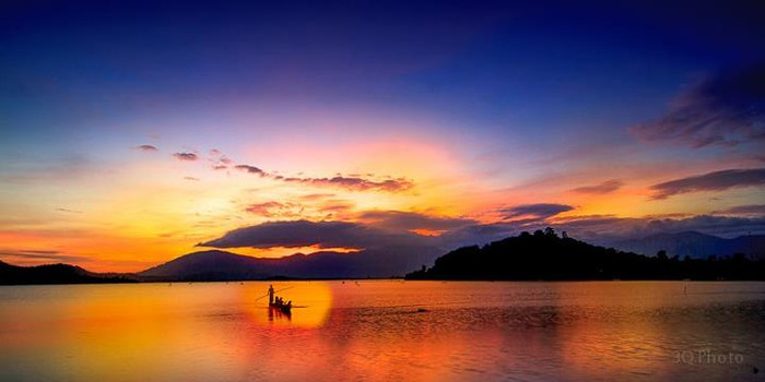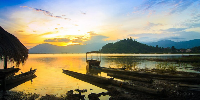 | Ánh nắng soi lên mặt hồ phẳng lặng - một màu nắng đẹp long lanh |