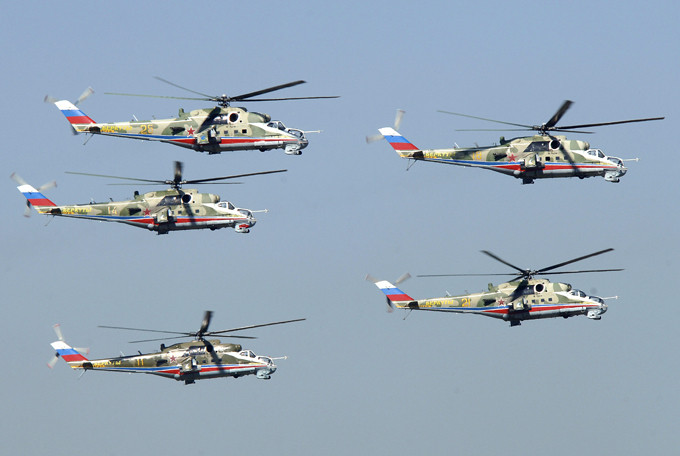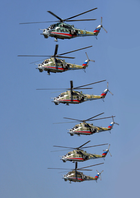 (GDVN) - “Berkut” là phi đội trực thăng bay trình diễn của Không quân Nga, gồm 6 trực thăng tấn công Mi-24.