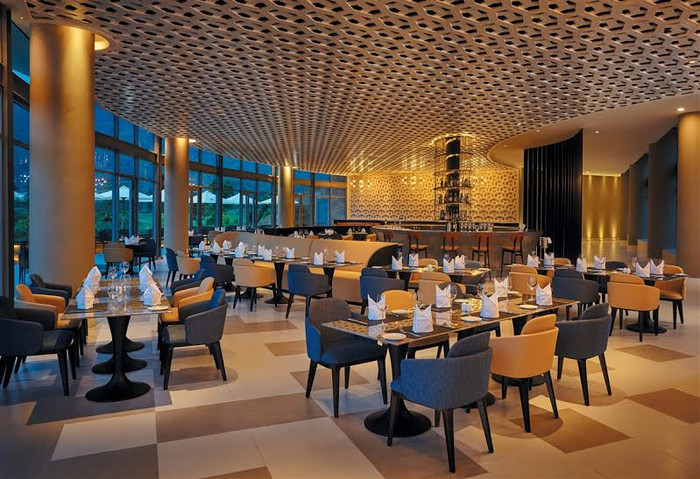 Nhà hàng tọa lạc ngay cuối lỗ golf số 18 cũng là điểm kết thúc một vòng golf. Từ nơi này, các golf thủ có thể nhìn bao quát toàn sân golf, cùng thư giãn và thưởng thức nét đặc sắc, độc đáo trong ẩm thực u, Á, Việt Nam.