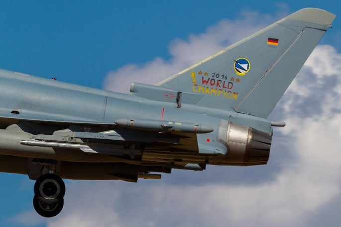Mạng "Những người yêu thích hàng không" ngày 20/7/2014 đưa tin và hình ảnh cho biết có người đã quan sát thấy một chiếc chiến đấu cơ của Không quân Đức được sơn hình dòng chữ Vô địch World Cup 2014 khi nó xuất hiện tại căn cứ không quân.