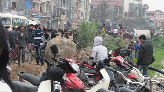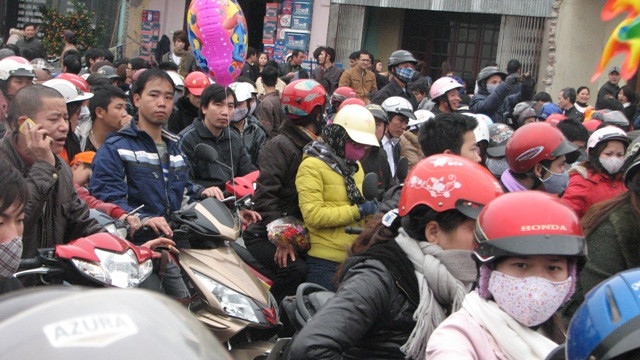 | Cả một đoạn đường gần 3 km từ cổng vào lễ hội đến hết thị trấn Lim (hướng về Hà Nội) đều bị kẹt cứng |