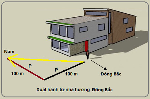 Ra khỏi nhà, rẽ phải, đến khi gặp một ngã tư (cách nhà bạn 100 m chẳng hạn) thì tiếp tục rẽ trái, đi thêm một đoạn cũng bằng 100 mét thì dừng lại. Điểm đó nằm ở phía Nam so với nhà bạn.