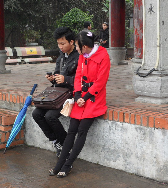 | Nhiều bạn trẻ "vô tư" thể hiện tình cảm đôi lứa giữa chốn đông người. |