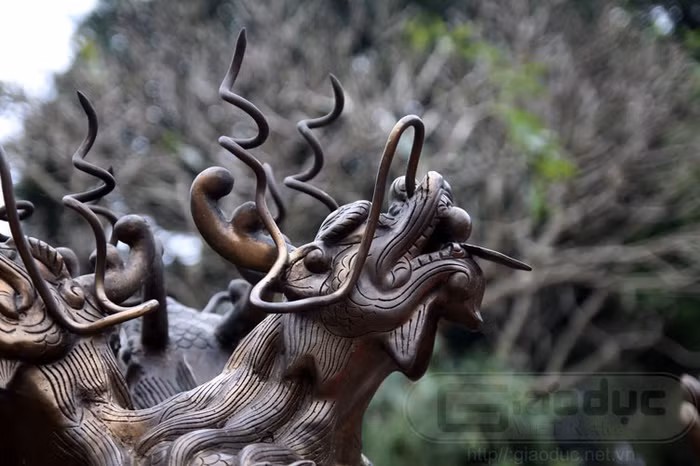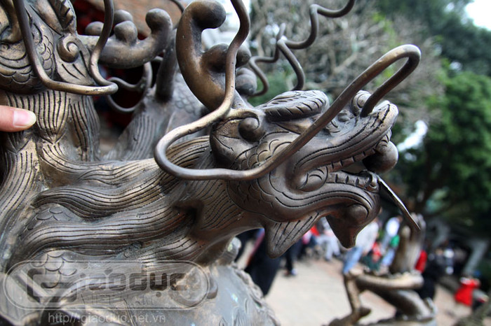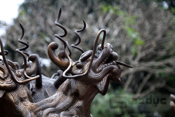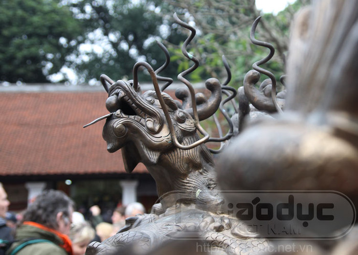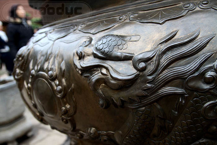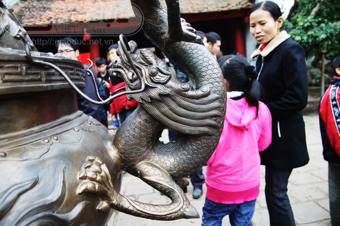 | Chiếc đỉnh đồng "khổng lồ" đặt tại sân Trình trong khuôn viên Văn miếu Quốc Tử Giám có tới 9 chú rồng chầu. |