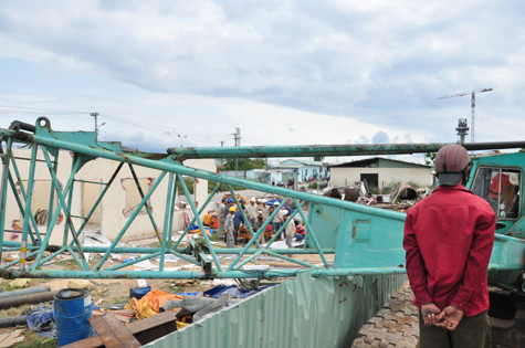 | Do vướng gây cáp cẩu container nên phần cần bị bẻ quặp vào bên trong khu vực dự án mà không rơi đập ra đường dẫn lên cầu Nguyễn Văn Trỗi nên không có thêm thương vong mặc dù lúc này lưu lượng người qua cầu Nguyễn Văn Trỗi rất đông. |