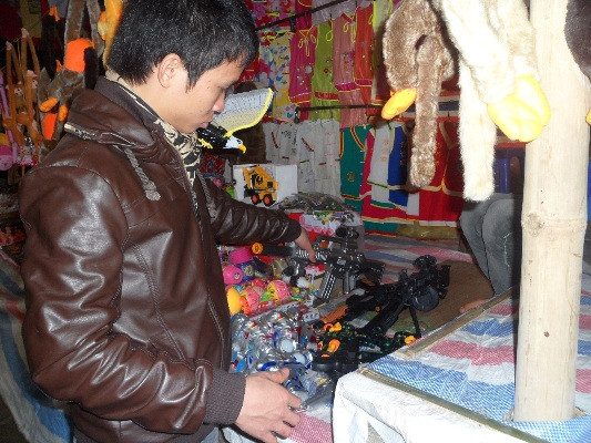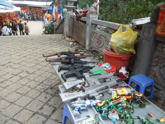 | Đến du xuân, trẩy hội tại chùa Hương, nếu có nhu cầu du khách sẽ được các chủ cửa hàng bán các loại đồ chơi bạo lực nhiệt tình "tư vấn" và thoải mái lựa chọn những khẩu súng mà mình ưng ý. |