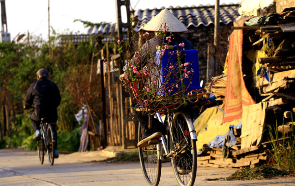 | Lác đác có nhiều người mang đào đi bán sớm |