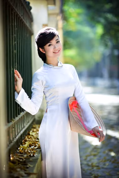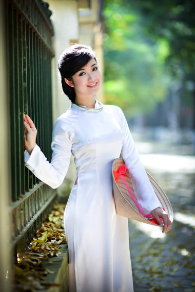 | Thiếu nữ với tà áo dài trắng dường như không thể thiếu trong bức tranh Hà Nội mùa sấu rụng. |