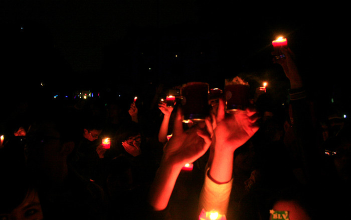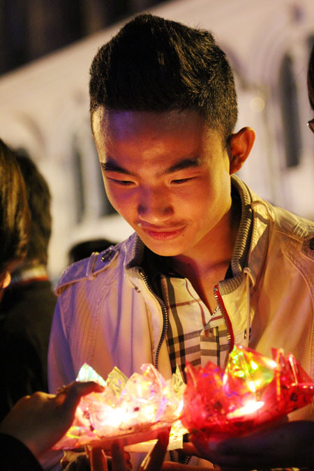 | Các bạn trẻ hưởng ứng bằng cách chuyền tay nhau những ngọn nến huyền ảo khiến cả khu vực Quảng trường lung linh. |