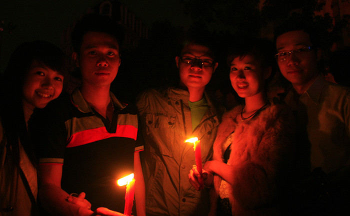 | Tham gia giờ trái đất tối 31/3 không chỉ có thanh niên Việt Nam mà còn có sự xuất hiện của khách nước ngoài. |