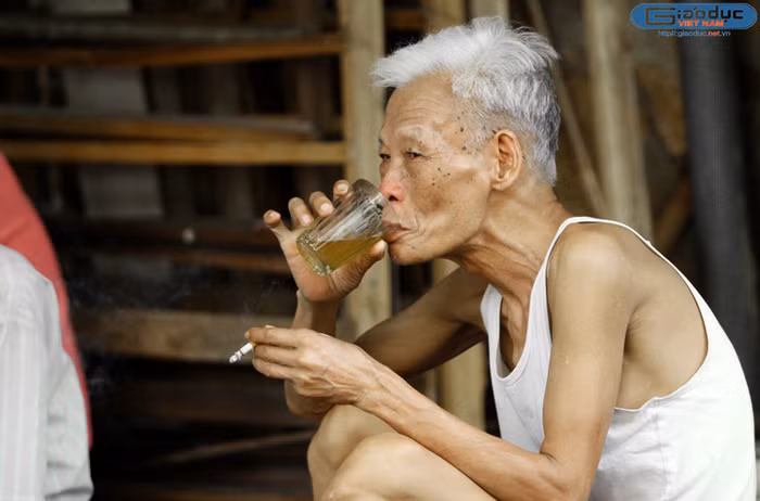 | Một ông cụ ngồi đọc báo mới ra. |