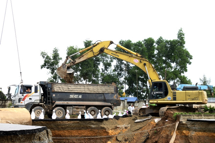 | Sáng nay, phía Nam Cường và Sông Đà Thăng Long đã bắt tay vào thực hiện việc khắc phục sự cố dưới sự giám sát của Ban 2 - Sở GTVT Hà Nội. |
