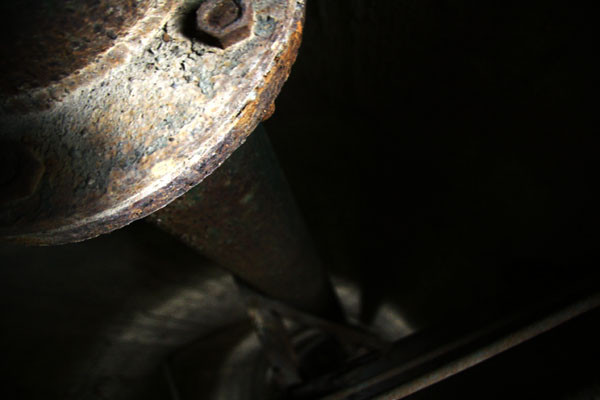 | Ánh sáng yếu ớt của buổi chiều đầu đông chiếu qua những ô cửa nhỏ chỉ vừa nhận rõ lối đi đang mục nát |
