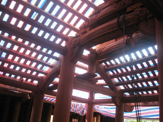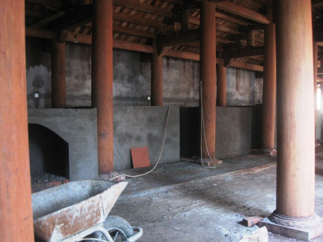 | Những phần của chùa Trăm Gian được xây mới lại kiên cố với những cột từ gỗ Lim. |
