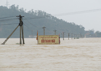 | Quốc lộ 1A bị chia cắt vì nước lũ dâng quá cao |