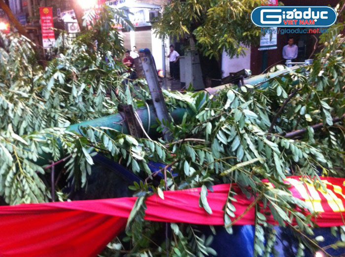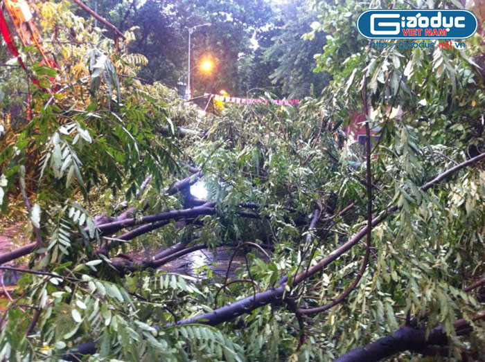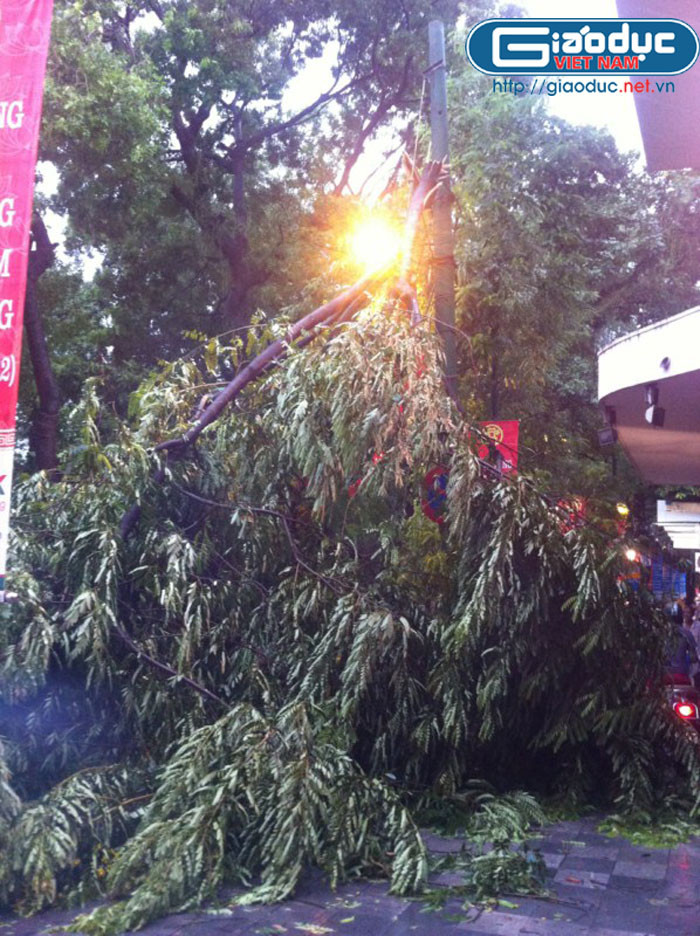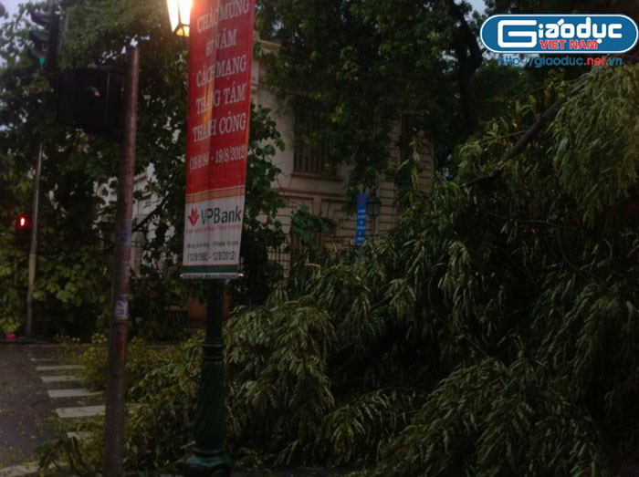 | Cành cây gãy, phủ kín cả mặt đường Tràng Thi |