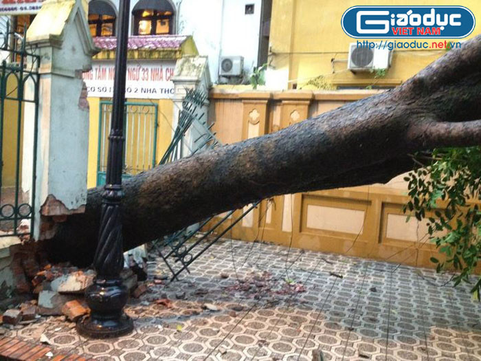 | Do gió lớn đã khiến một cây xanh lớn bật gốc, đổ sập hàng rào số nhà 33 Nhà Chung |