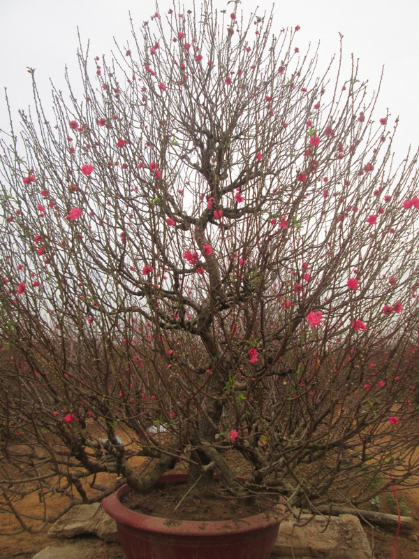 | Những cây đào được người dân đưa vào chậu vận chuyển lên phố bán hoặc có thể khách hàng sẽ tới tìm mua (ảnh HC) |