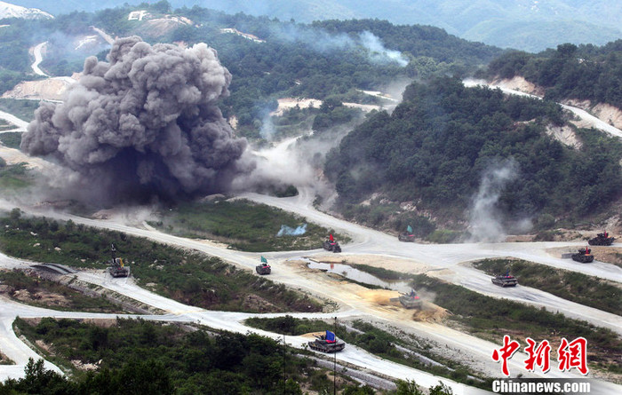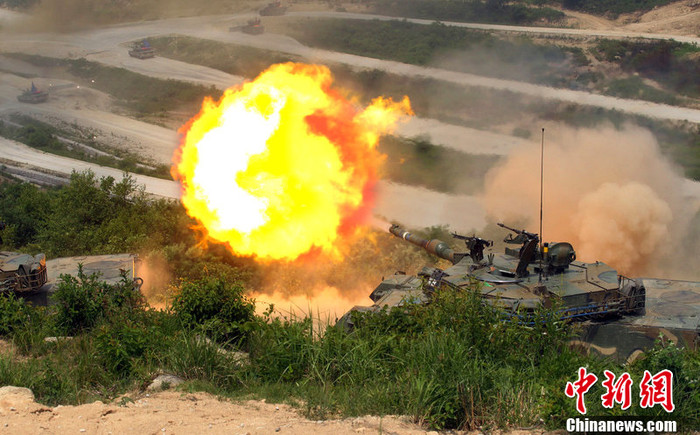 (GDVN) - Ngày 22/6/2012, tại khu vực Pocheon, tỉnh Gyeonggi-do, Hàn Quốc, quân đội Hàn Quốc và Mỹ đã tiến hành một cuộc tập trận bắn đạn thật lớn nhất trong lịch sử. Tham gia cuộc tập trận lần này, cả hai nước đều huy động nhiều xe tăng, xe bọc thép, pháo tự hành và hàng chục máy bay chiến đấu các loại.